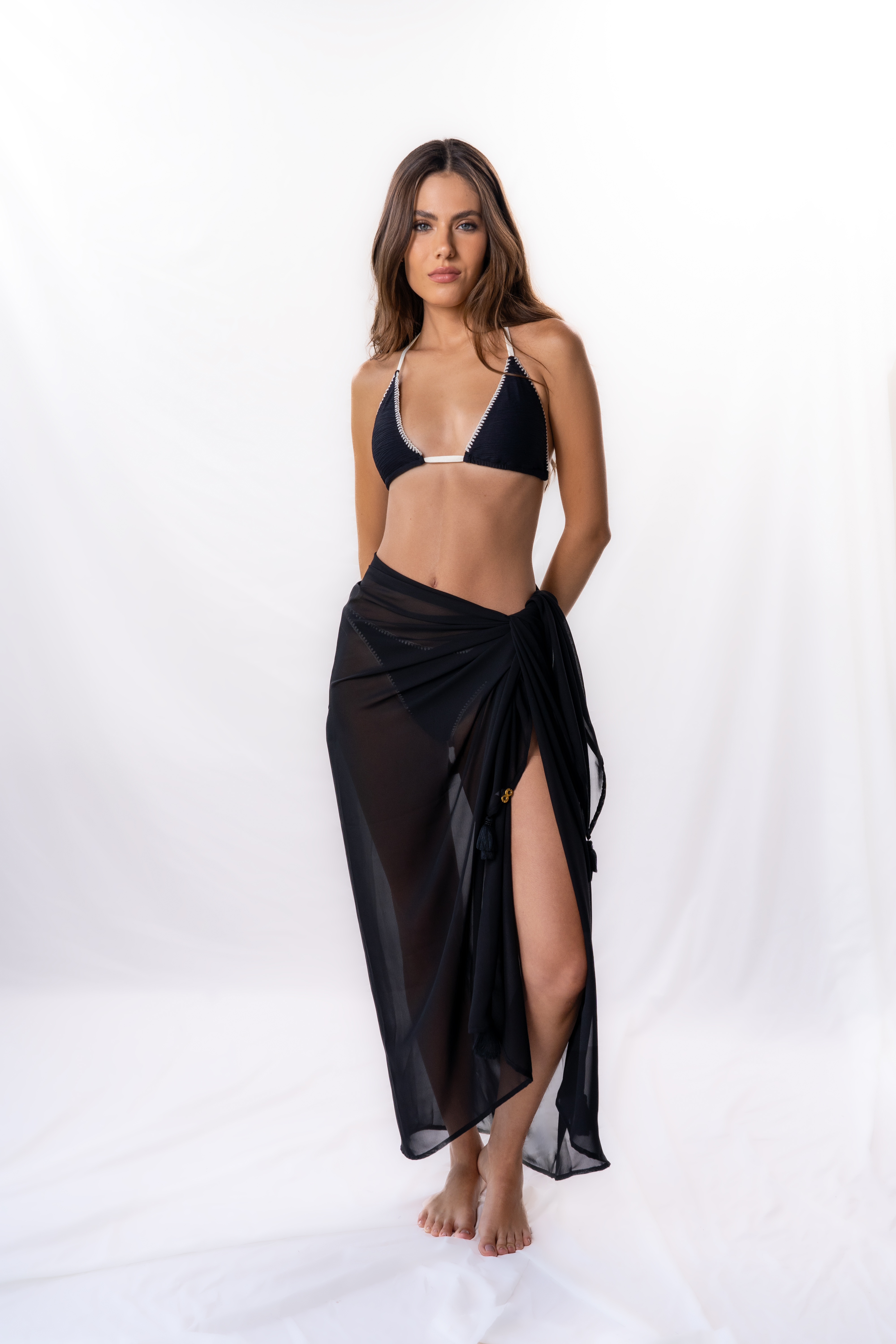 Cover up largo de silueta fluida diseñado para acompañar el movimiento del cuerpo con elegancia, su tejido ligero y translúcido aporta frescura y sofisticación ideal para usar sobre el bikini, el amarre lateral permite ajustar la abertura según el estilo deseado creando una caída natural y favorecedora.